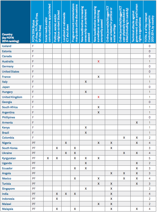 | Status | Total Score | Obstacles to Access | Limits on Content | Violations of User Rights | |
